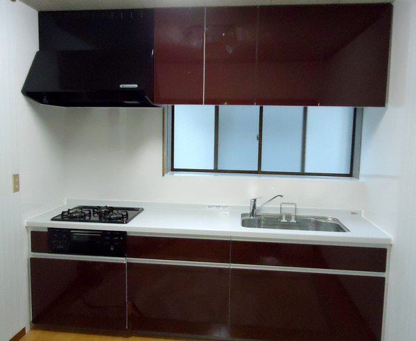 こちらはもともとL字型に流しとガスコンロが設置されていましたが、リフォームに際して直線型のキッチンに変更いたしました。